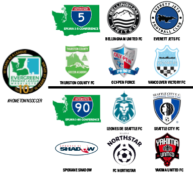 Washington’s Evergreen Premier League (EPLWA) is thrilled to announce the start of year 10! That’s right, we’re in year 10 of the EPLWA! This year features the addition of three new teams: Leones de Seattle FC, Seattle City FC, and Thurston County FC.